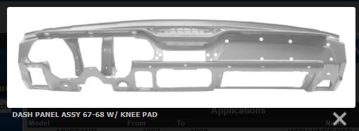 Dash Panel Assembly Steel with Knee Pad Holes 67/68