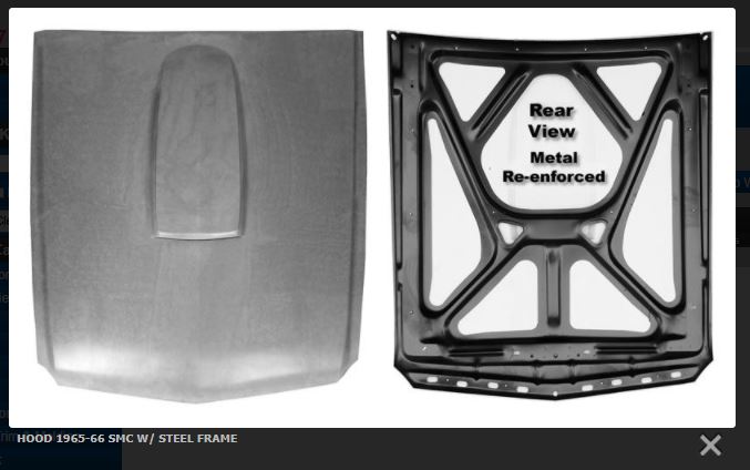 Hood Fibreglass with Steel Bracing & Hood Scoop 65/66
